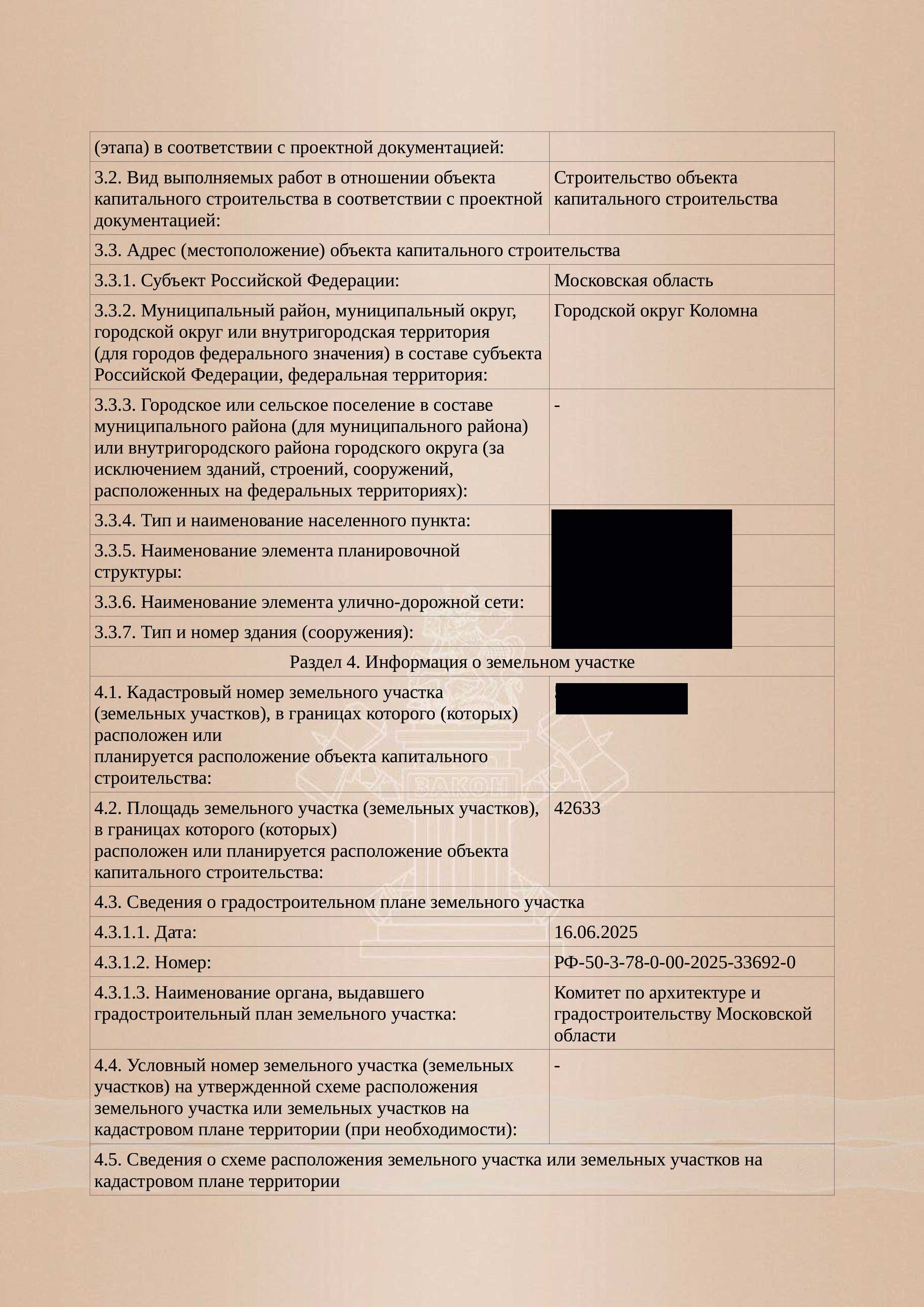 ООО «ЗЕМЛЕГРУПП» выполнено сопровождение процедуры получения разрешения на строительство объекта капитального строительства, выданного Главным управлением государственного строительного надзора Московской области.